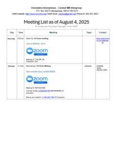 “Overeaters Anonymous is a fellowship of individuals who, through shared experience, strength, and hope, are recovering from compulsive overeating. We welcome everyone who wants to stop eating compulsively. There are no dues or fees for members: we are self-supporting through our own contributions, neither soliciting nor accepting outside donations. OA is not affiliated with any public or private organization, political movement, ideology or religious doctrine; we take no position on outside issues. Our primary purpose is to abstain from compulsive overeating and compulsive food behaviors and to carry the message of recovery through the Twelve Steps of OA to those who still suffer.” – copyright held by Overeater Anonymous, Inc., used with permission